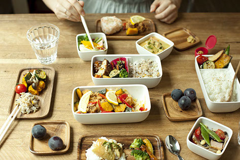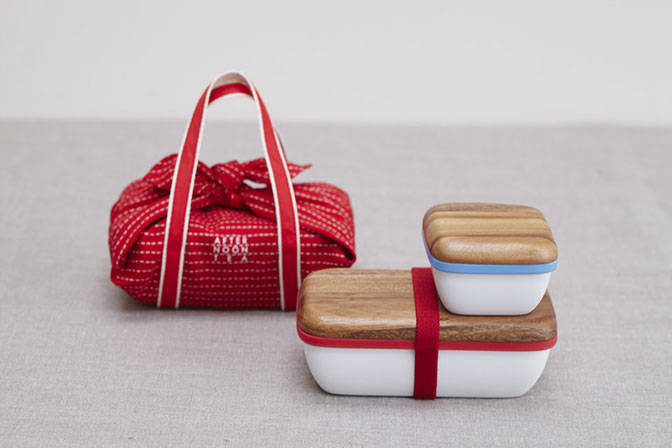 陶器のような質感の容器、木のフタ、間に挟まるシリコンのパッキングで構成されたお弁当箱。お弁当の時間をもっと豊かなものにすることをコンセプトに開発しました。「器(うつわ)」としての質感にこだわり、素材や形状を丁寧に設計しています。木製のフタは取り皿としても使用することができ、お弁当のおかずをシェアする楽しさも広げます。2013年度グッドデザイン賞 受賞。「根津さんは、今回のプロジェクトにおいて素晴らしいファシリテーター役でした。ランチボックスに求められることについて、メンバー全員から上手に意見を吸い上げ、議論をリードしてくれたんです。」(開発メンバー 國本さん)2015年には、さりげなくメッセージを伝えられるマグカップ「メッセージマグ」、2018年には、美味しく紅茶を入れられる工夫が詰まった「きがるにちゃんと」シリーズ、スクエアでスッキリした見た目なのに収納力抜群の「スクエアバッグシリーズ」が発売されました。2018年度グッドデザイン賞 受賞。