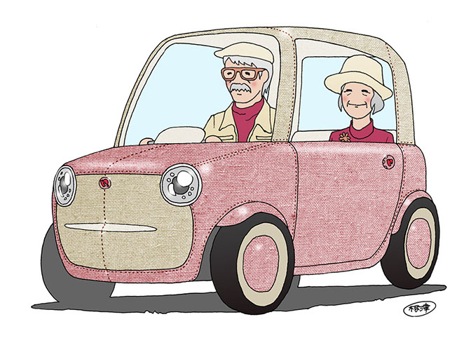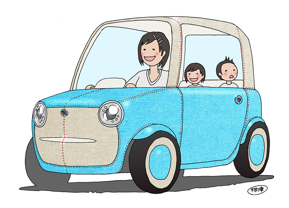 布製やわらかボディの超小型モビリティ。高齢ドライバーや歩行者も安心して共存できる「人にやさしい街」を実現する「小さい・軽い・やわらかい」自動車です。車両サイズはシングルベッドサイズほど、高齢者でも乗り降りしやすい回転シートを備えています。外装には発泡ウレタンと布を用い、着せ替えも可能です。日本感性工学会 かわいい感性デザイン賞 2016 最優秀賞 受賞。